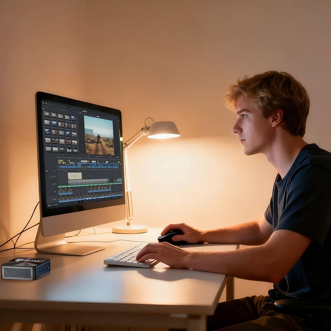 Будучи высокопроизводительным мини-ПК с искусственным интеллектом, BMAX B8 A Power не идет на компромиссы в отношении основного оборудования. Он оснащен процессором AMD Ryzen 7 PRO 8845HS, изготовленным по 4-нм техпроцессу, имеющим 8 ядер, 16 потоков, турбо-частоту до 5,1 ГГц и объем кэш-памяти третьего уровня 16 МБ. В тестировании PassMark этот процессор набрал 29 000 баллов, что на 10,6% лучше, чем у Ryzen 7 PRO 7840HS предыдущего поколения. Независимо от того, выполняете ли вы сложную визуализацию графики, одновременно редактируете несколько документов или запускаете большие приложения, он обеспечивает плавную и стабильную работу.